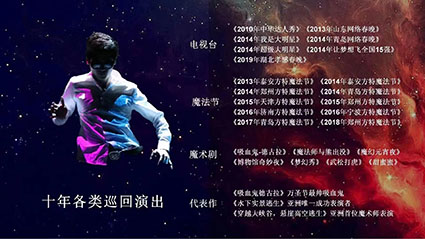 魔術(shù)節(jié)目:【大型魔術(shù)專場秀】推薦《銀河造夢師》國內(nèi)頂級魔術(shù)秀、《幻變直升飛機》、《高空美女懸浮》、《美女瞬間轉(zhuǎn)移》、《驚天水牢大逃生》、《高空死亡逃生》……共18-23個節(jié)目,整場75-90分鐘。